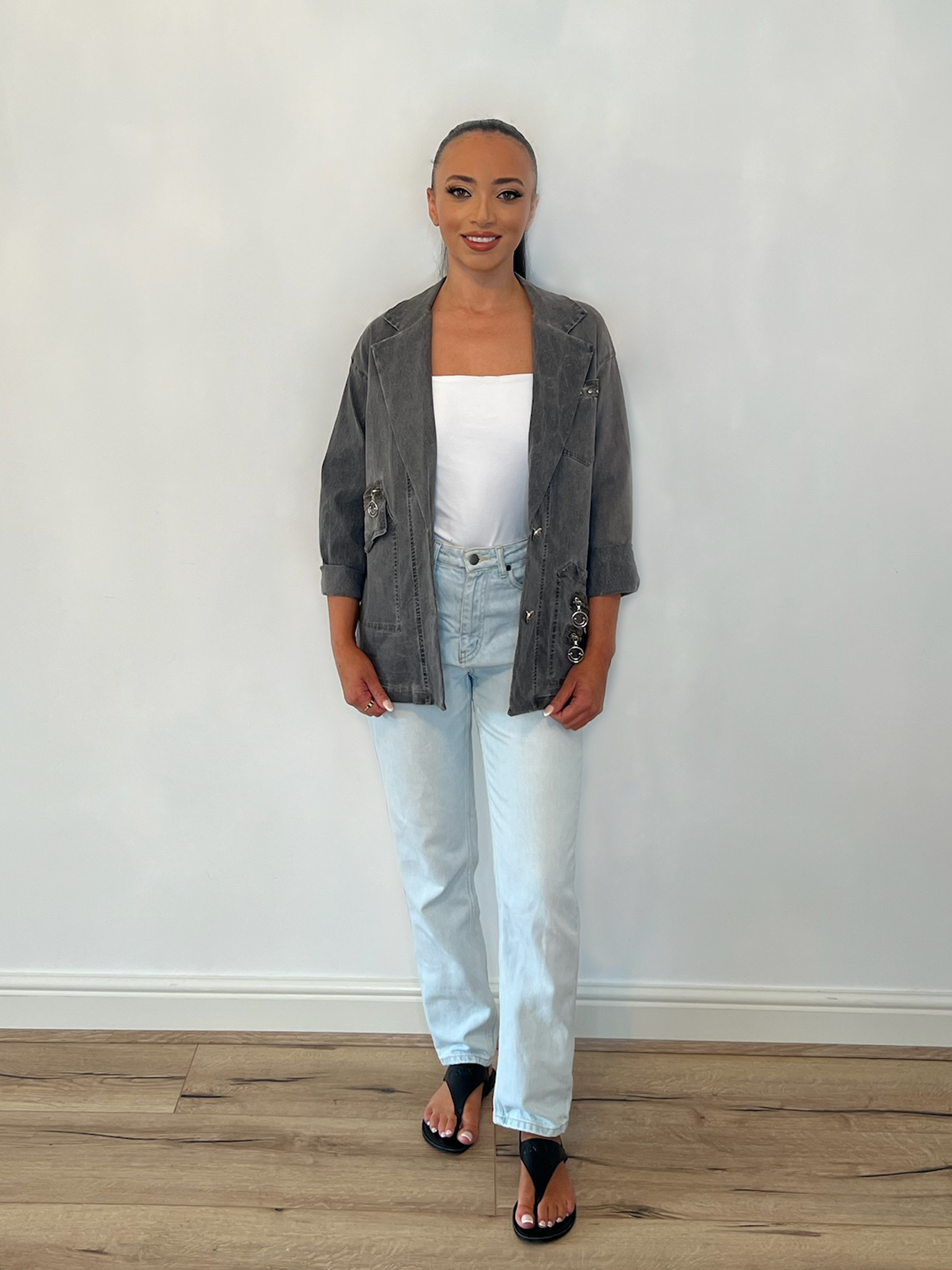 Get ready to rock your style with the KENDALL JACKET! This grey jacket is the perfect addition to your wardrobe, providing both functionality and fashion. Stay warm and trendy in any season with this versatile and stylish jacket. Don't miss out on this must-have piece for your wardrobe!