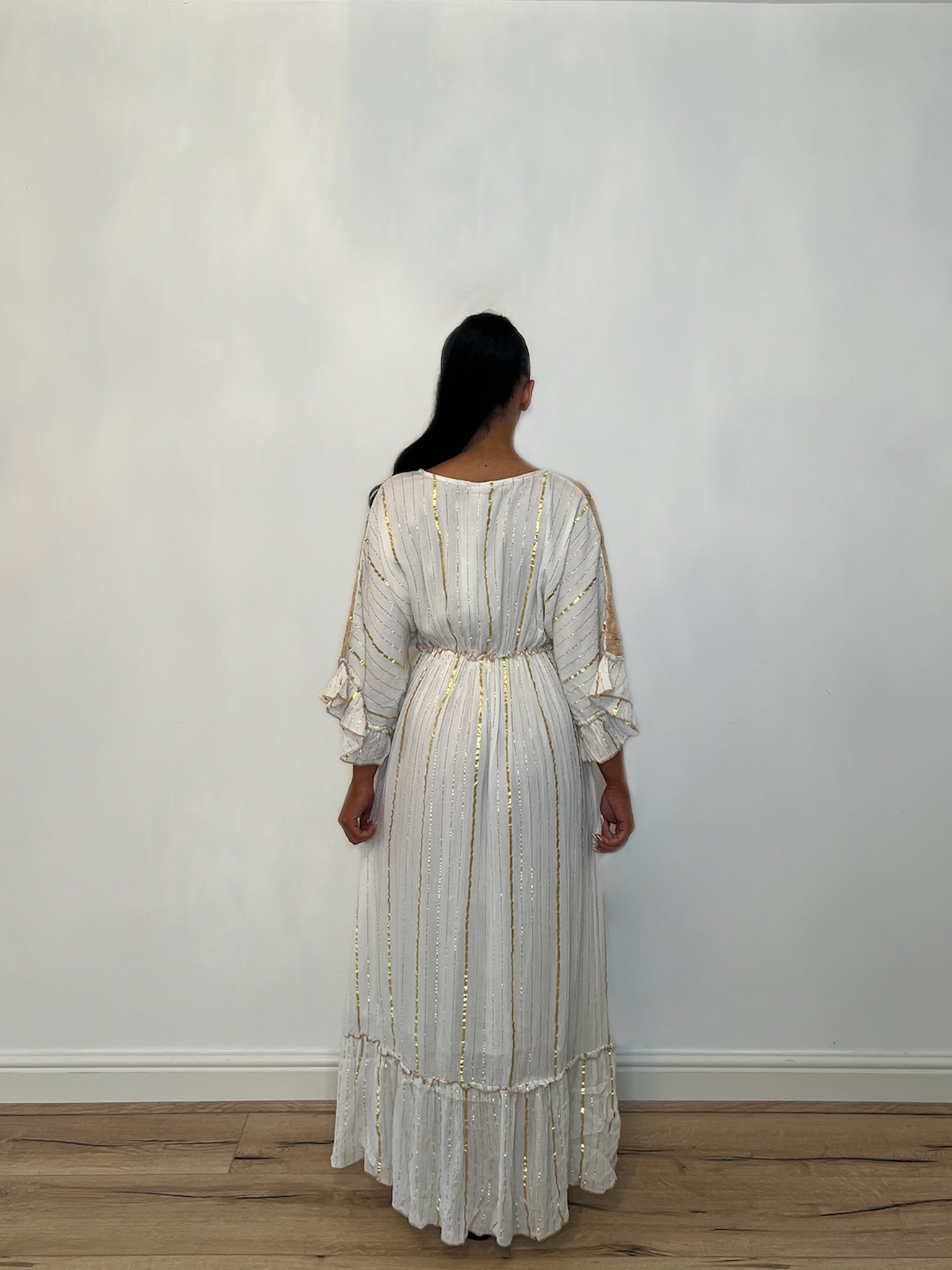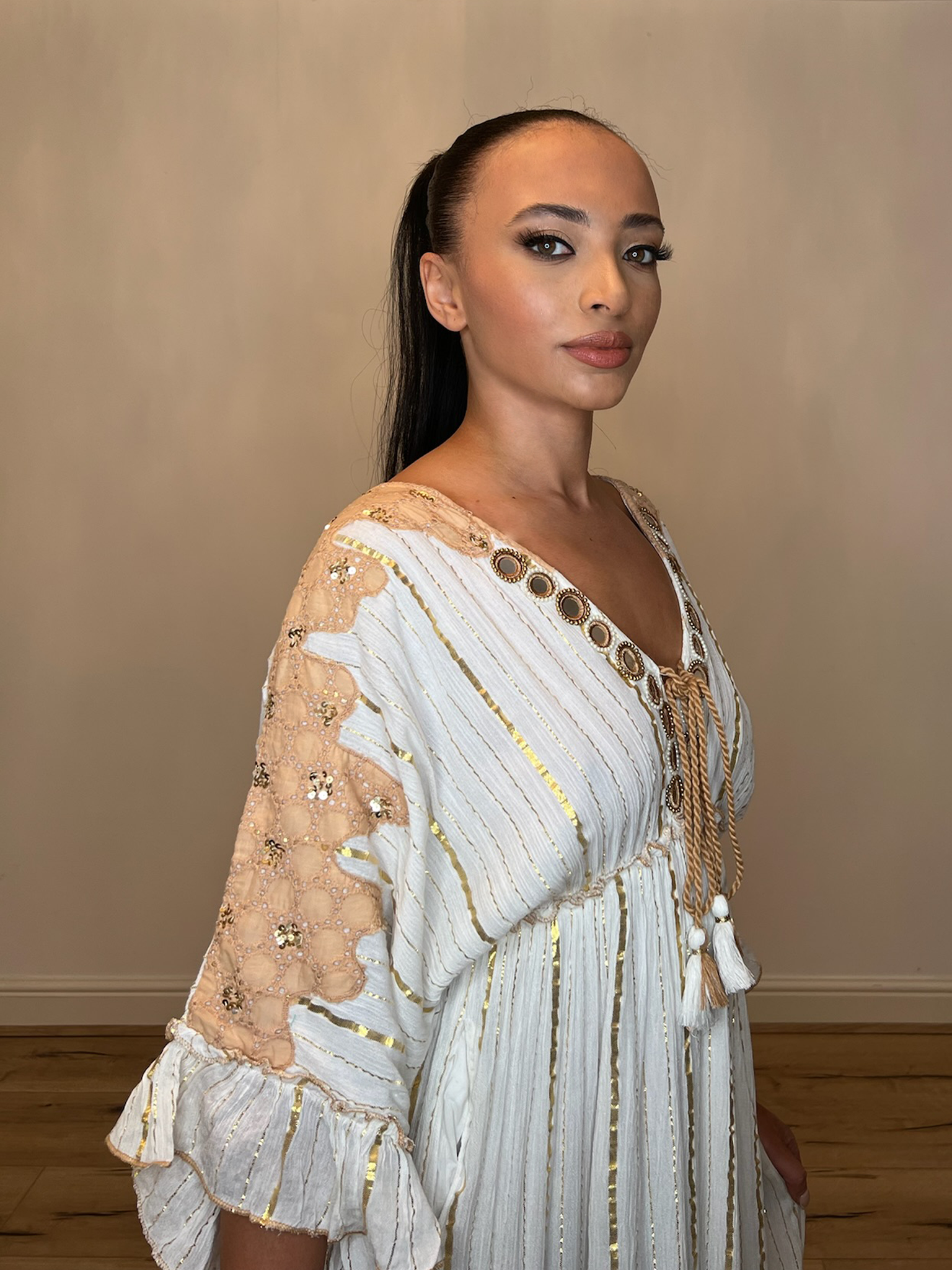 Get ready to take on the summer heat with our SANDSTORM MAXI DRESS! Made from lightweight, breathable fabric, this dress will keep you cool and stylish all season long. Overlay lace work and with elasticated waste and mirror work. Perfect for a day at the beach or a night out.